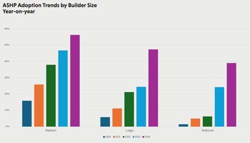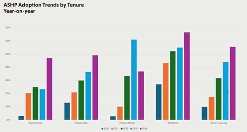 The increase in adoption has been led by self-builders, where as far back as 2020 nearly 30% of projects were adopting ASHP.