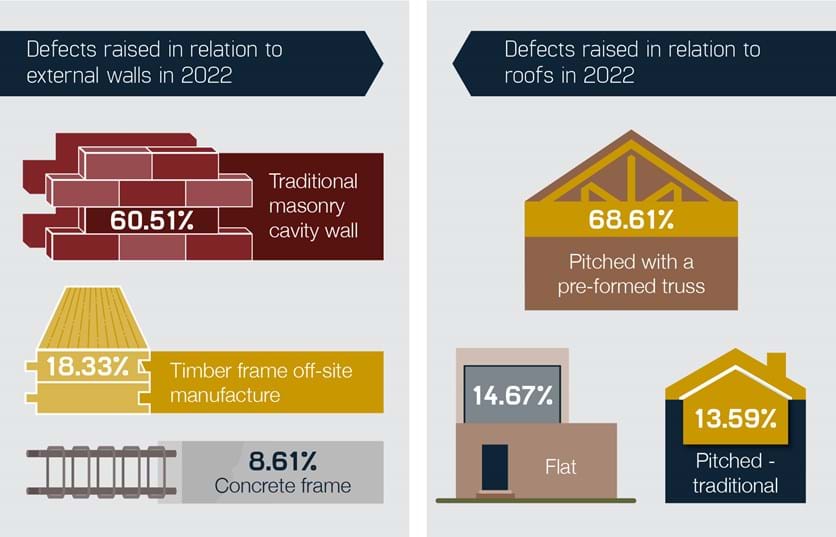 Roofs also saw a notable jump (5.3%) in reported defects from 2021 with the main culprits being: