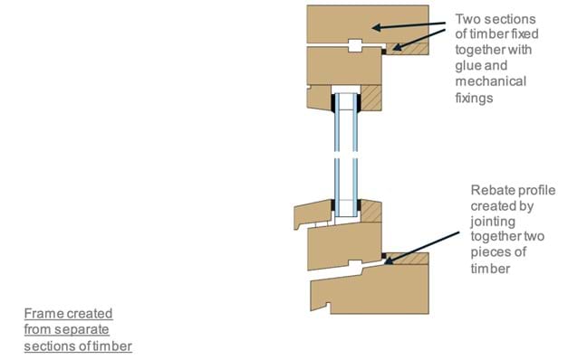 The practice of ‘manufacturing’ timber frame sections in uncontrolled environments e.g. off-site in workshops not using the correct methodology and machinery, or ‘ad-hoc’ carpentry window ‘build-ups’ being created on-site, is resulting in timber window failures in service.